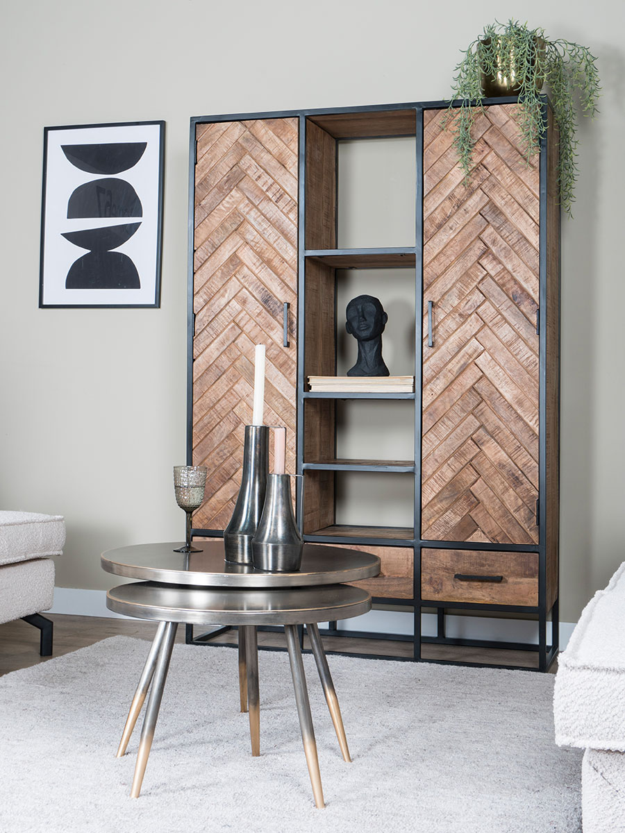 Handig voor extra opbergruimte én om je woonaccessoires, planten of verzameling een mooi plekje te geven! Hoe dan ook zal de kast een eyecatcher in jouw interieur zijn.