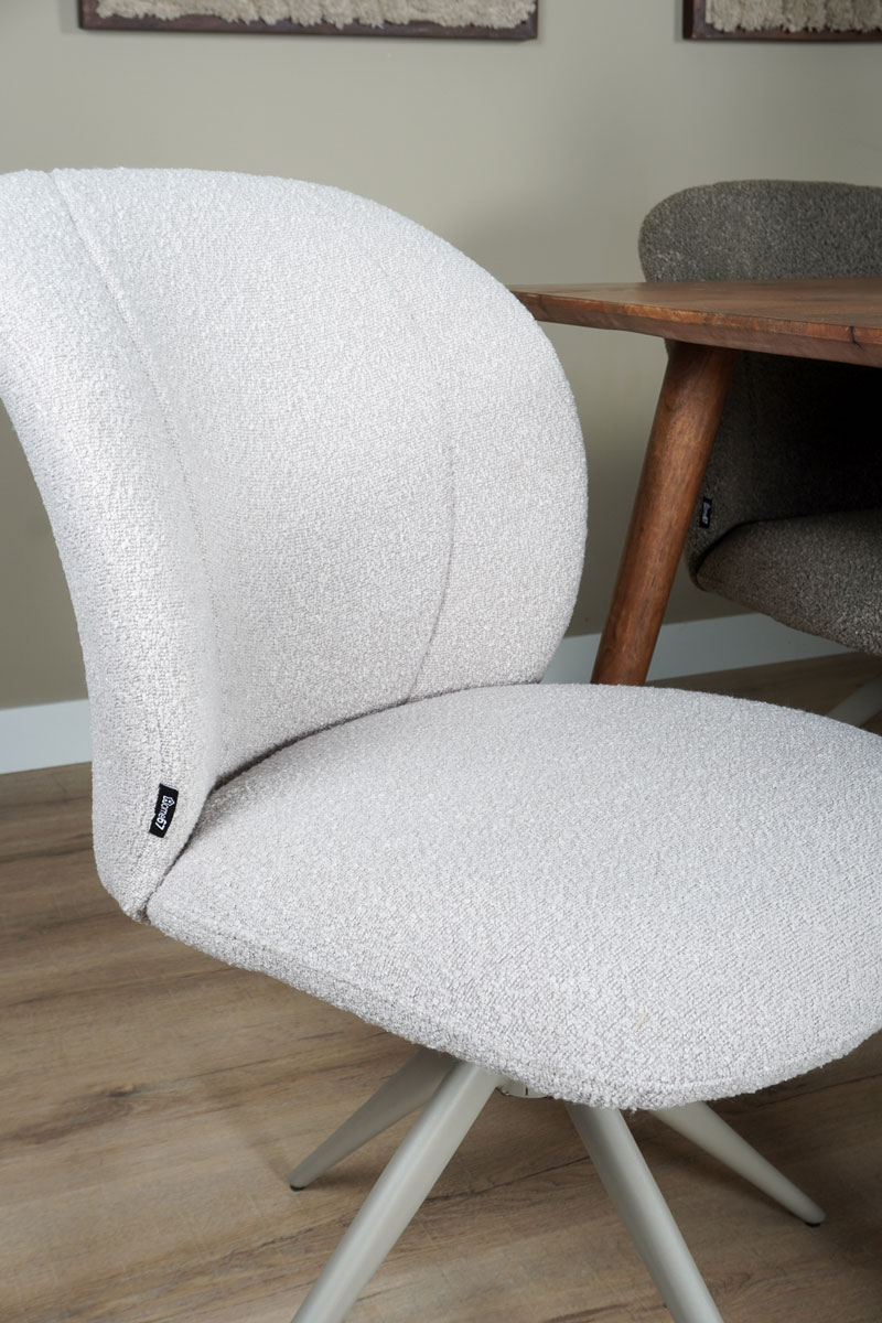 Bekleed met een zachte bouclé stof, straalt deze stoel warmte en luxe uit. Waar de meeste eetkamerstoelen een zwart onderstel hebben, heeft Cosmo een onderstel in de kleur taupe. Dit maakt de stoel dan ook zo uniek!