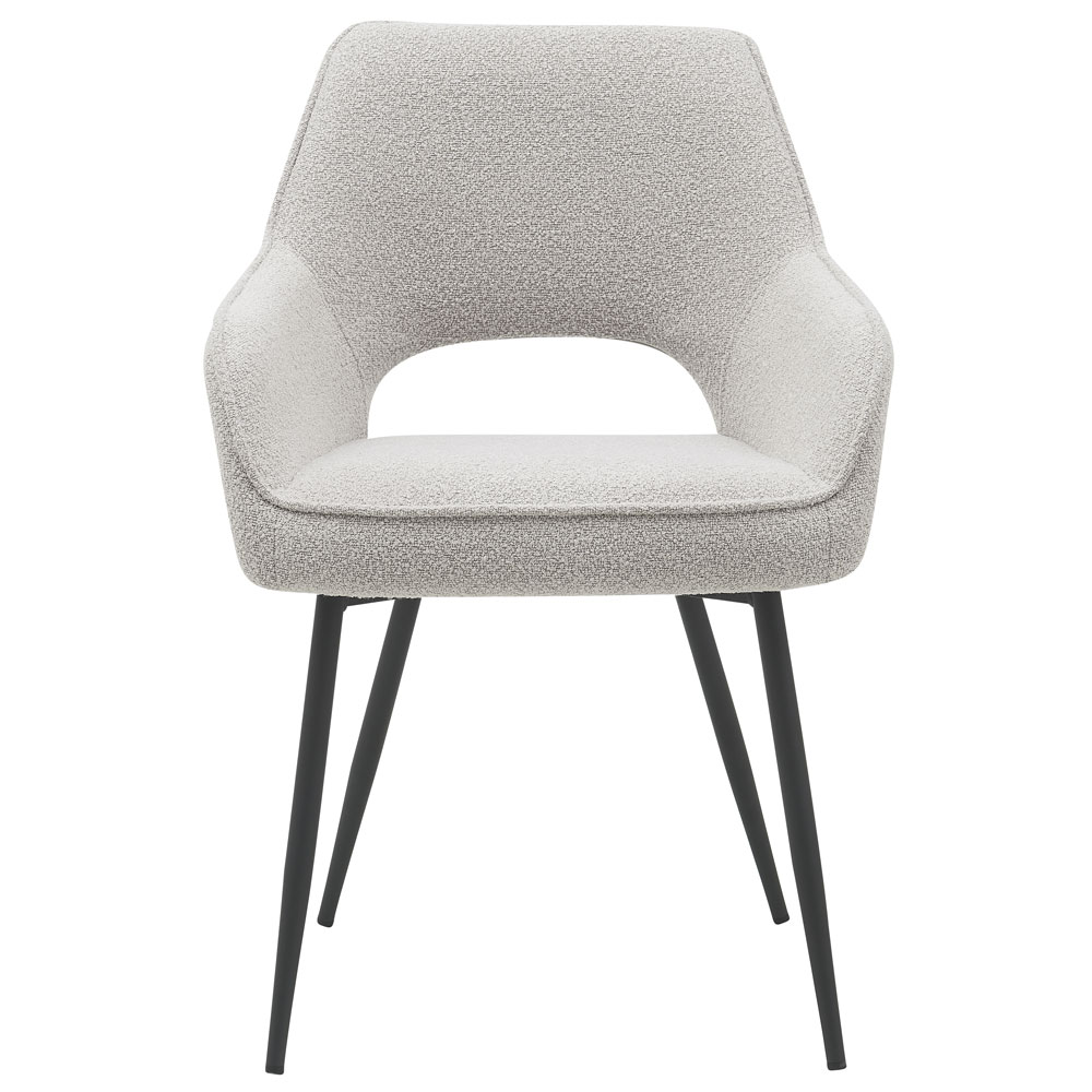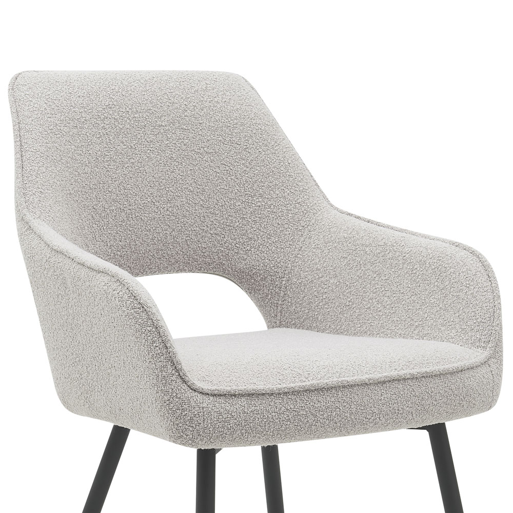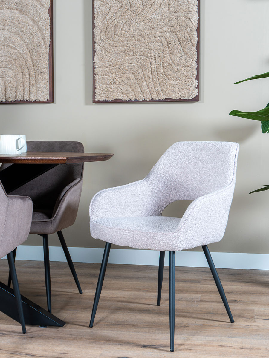 Wat Gina uniek maakt, is de opening aan de achterzijde voor een luchtige uitstraling en de schitterende bouclé stof. Deze kenmerken voegen een vleugje stijl toe aan je eetkamer of keuken.