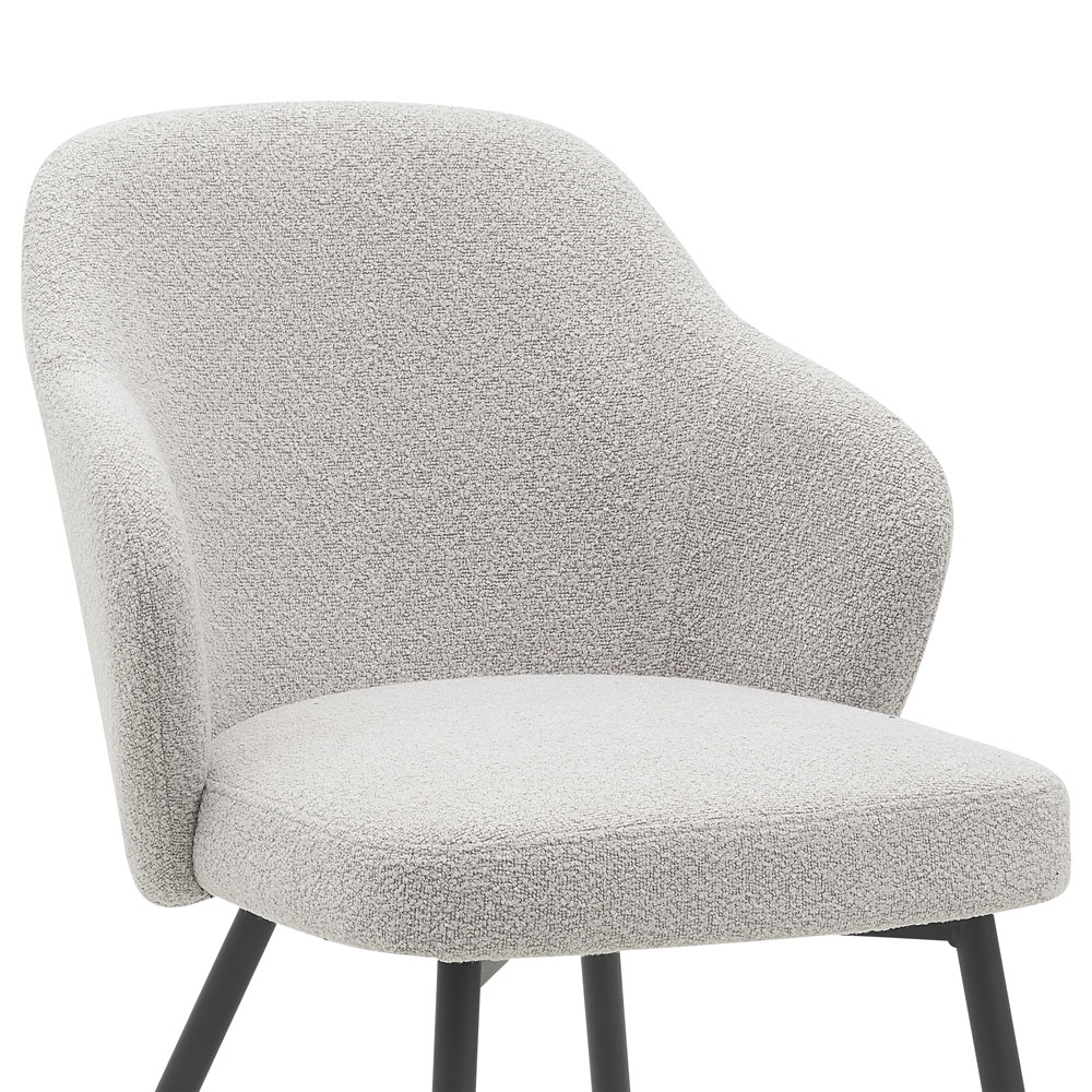Wat Kendra uniek maakt, zijn de prachtige ronde vormen en de schitterende bouclé stof. Deze kenmerken voegen een vleugje stijl toe aan je eetkamer of keuken.