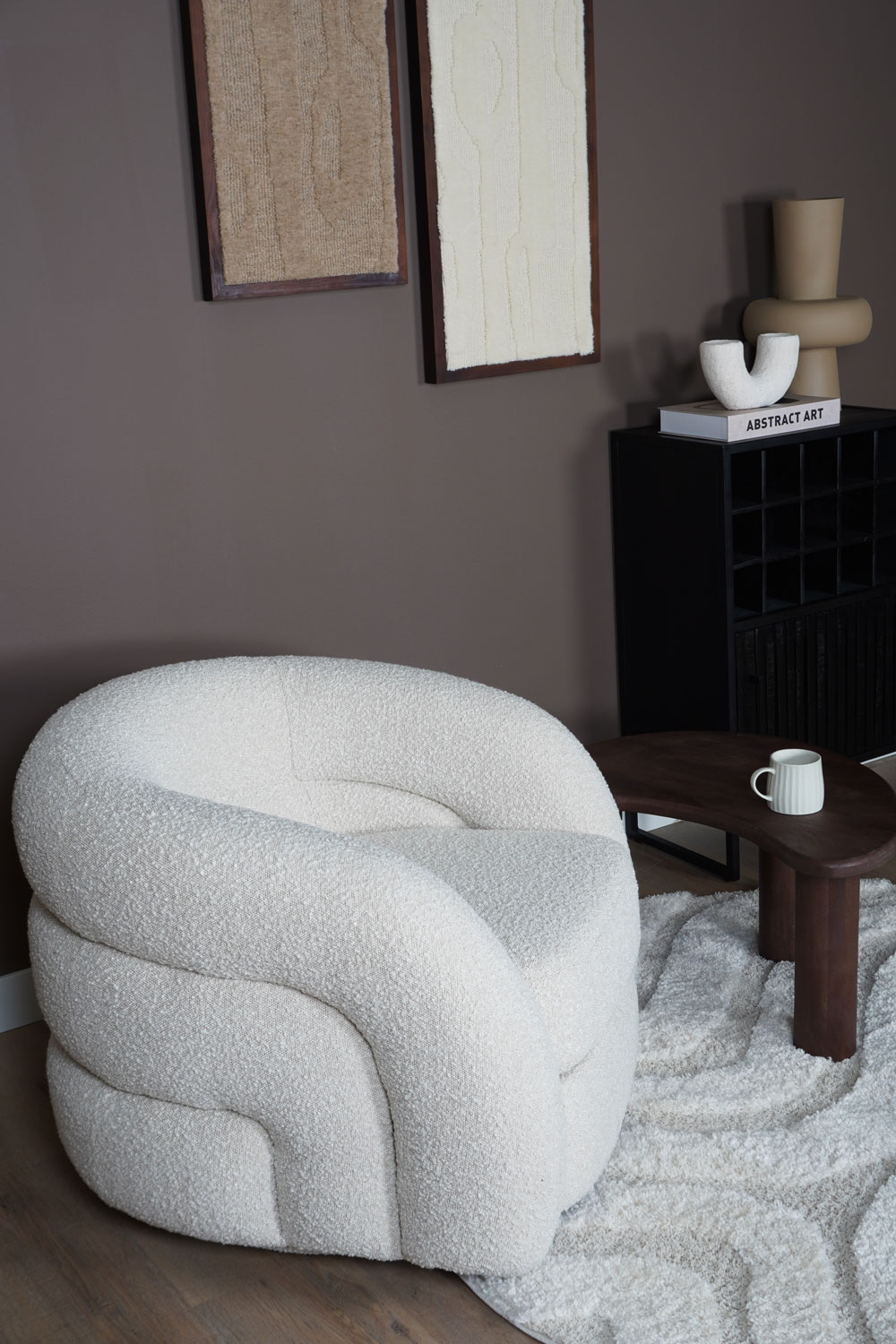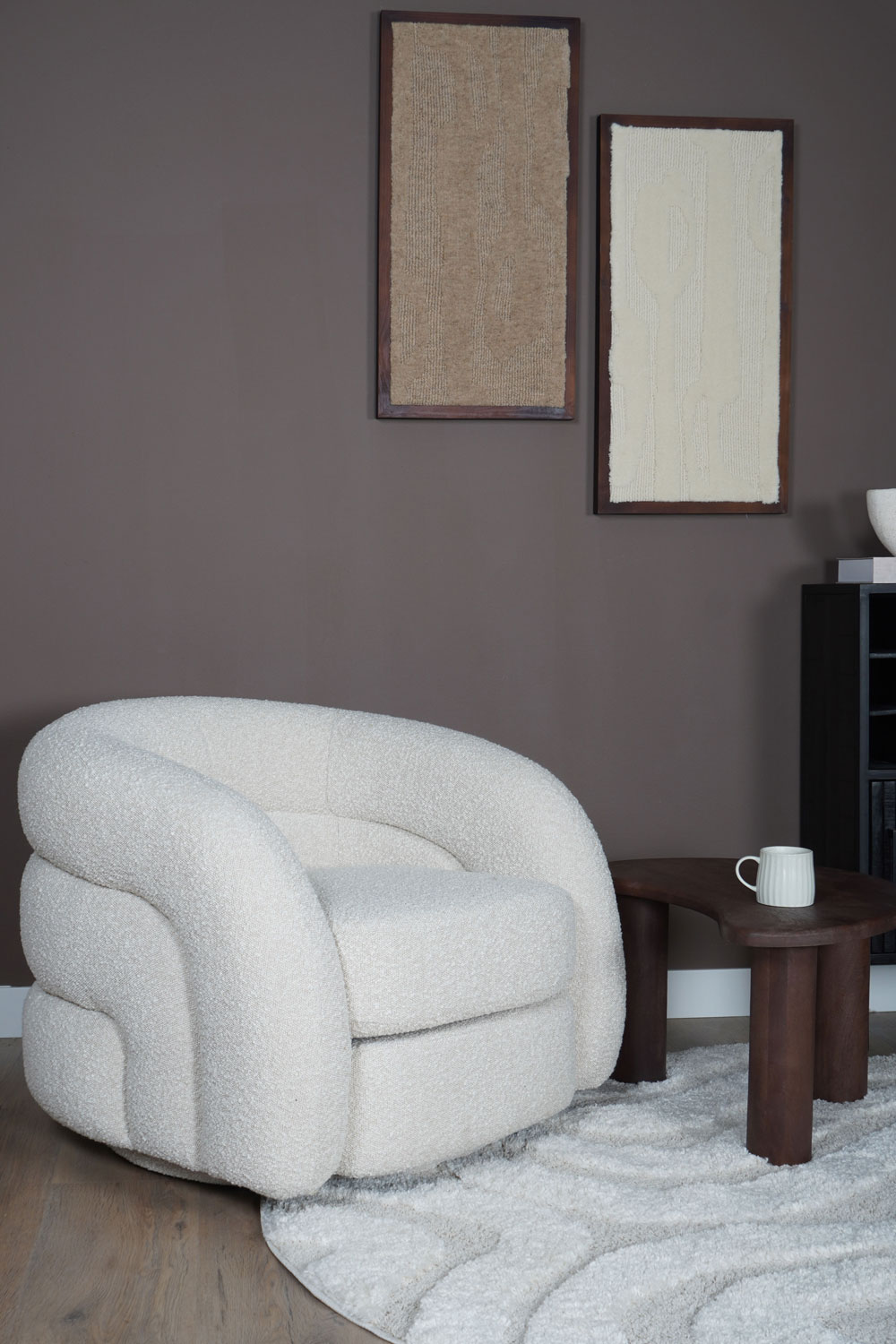 Bekleed in een zachte, bouclé-achtige stof voelt de Momo niet alleen warm en comfortabel aan, maar voegt hij ook een subtiele textuur toe aan de ruimte. De ruime zitting en de dikgevulde rug- en armleuningen zorgen voor een heerlijk zitcomfort, ideaal voor lange avonden ontspannen lezen of gezellig borrelen.