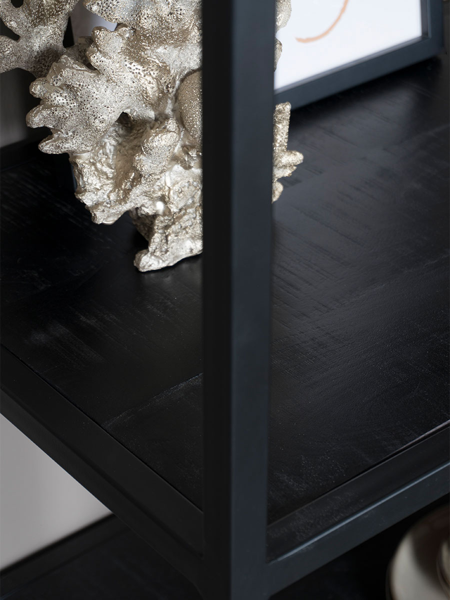 Ben je op zoek naar een stoere, industriële kast? Vakkenkast Huub combineert zwart mangohout met zwart metaal. Doordat de open vakken asymmetrisch zijn ingedeeld ontstaat er een speels effect voor in jouw interieur. Met deze zwarte houten vakkenkast heb je zowel een trendy als functionele kast voor in de woonkamer, slaapkamer of het thuiskantoor.