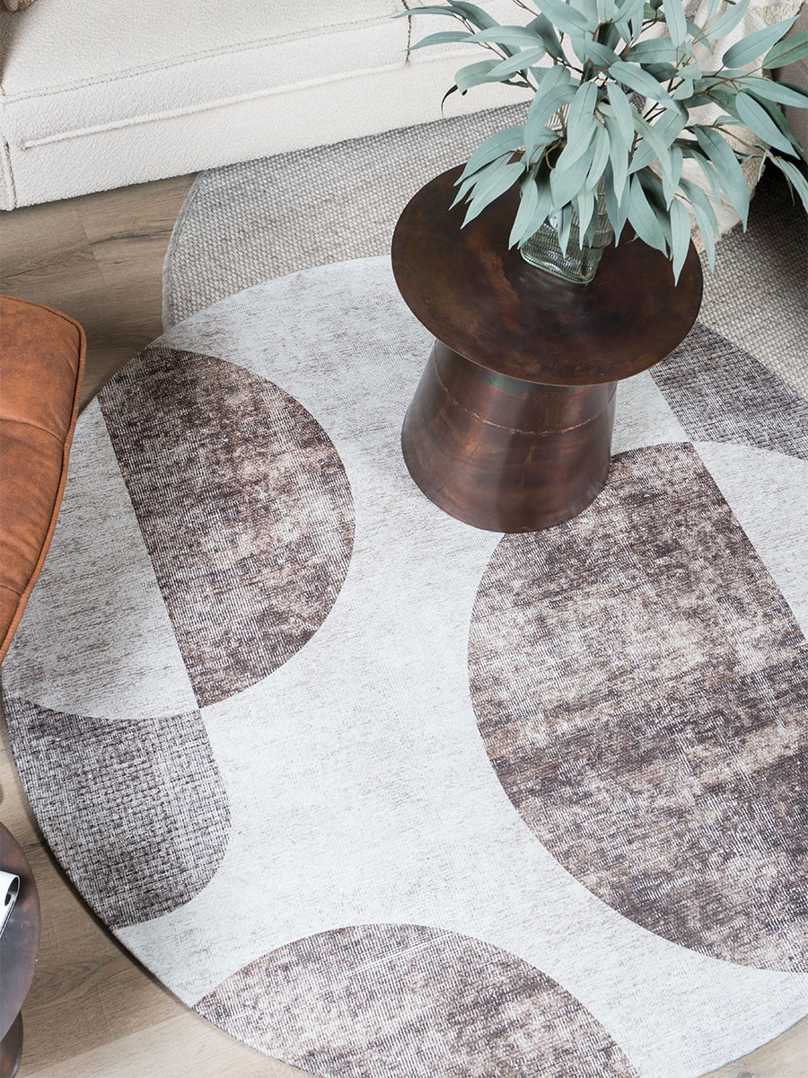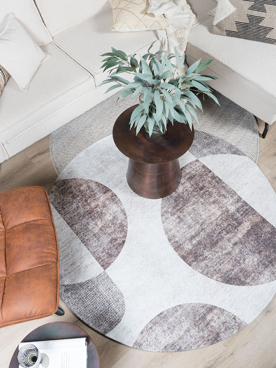 Breek de rechte lijnen in jouw interieur met Vloerkleed Cava. Dit karpet maakt jouw interieur net wat knusser en gezelliger. De vergrijsde kleurtinten lopen mooi in elkaar over, met verschillende ronde figuren die zorgen voor rust in je interieur. Een geometrisch kleed wat mooi in de woonkamer staat maar zeker ook in de slaapkamer!