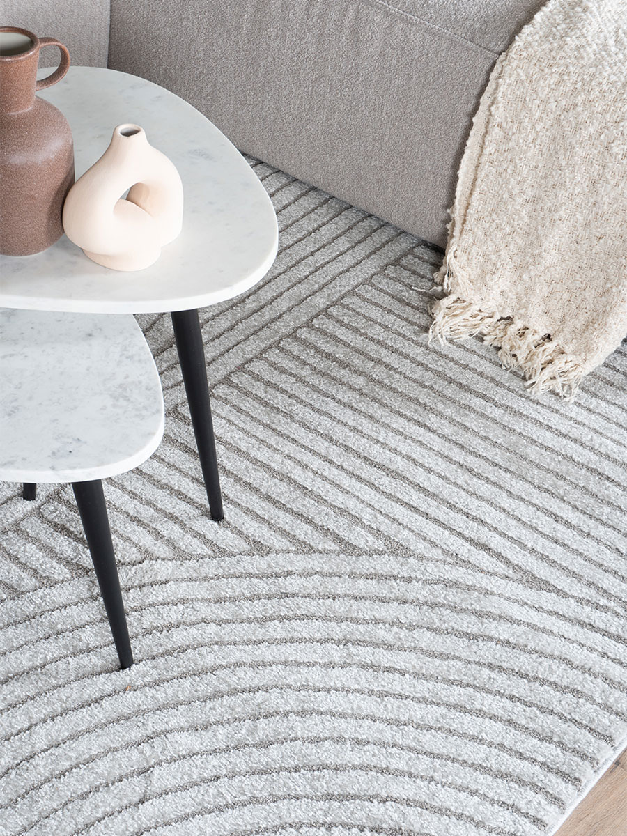 Het opvallende lijnenpatroon van Vloerkleed Ella is als een zachte golf van ronde en rechte lijnen die door het kleed lopen. Het hoog-laag poolontwerp zorgt voor een subtiel reliëf, waardoor het patroon zichtbaar wordt. Dit kleed voegt niet alleen textuur toe aan de ruimte, maar is op zichzelf een kunstwerk. De zachte kleur en het patroon maken het gemakkelijk om Ella bij jou thuis toe te passen.