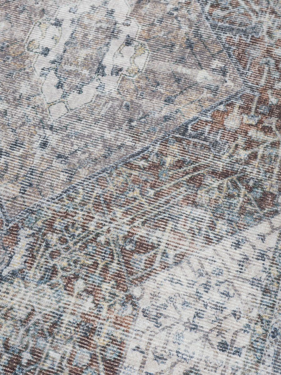 Het design van vloerkleed Kordi is geïnspireerd op de klassieke, versleten prints van oude vintage vloerkleden uit de stad Kordi en vertaalt naar een modern design. Haal het stoere vintage karakter in huis, met vloerkleed Kordi van het merk Veer Carpets!