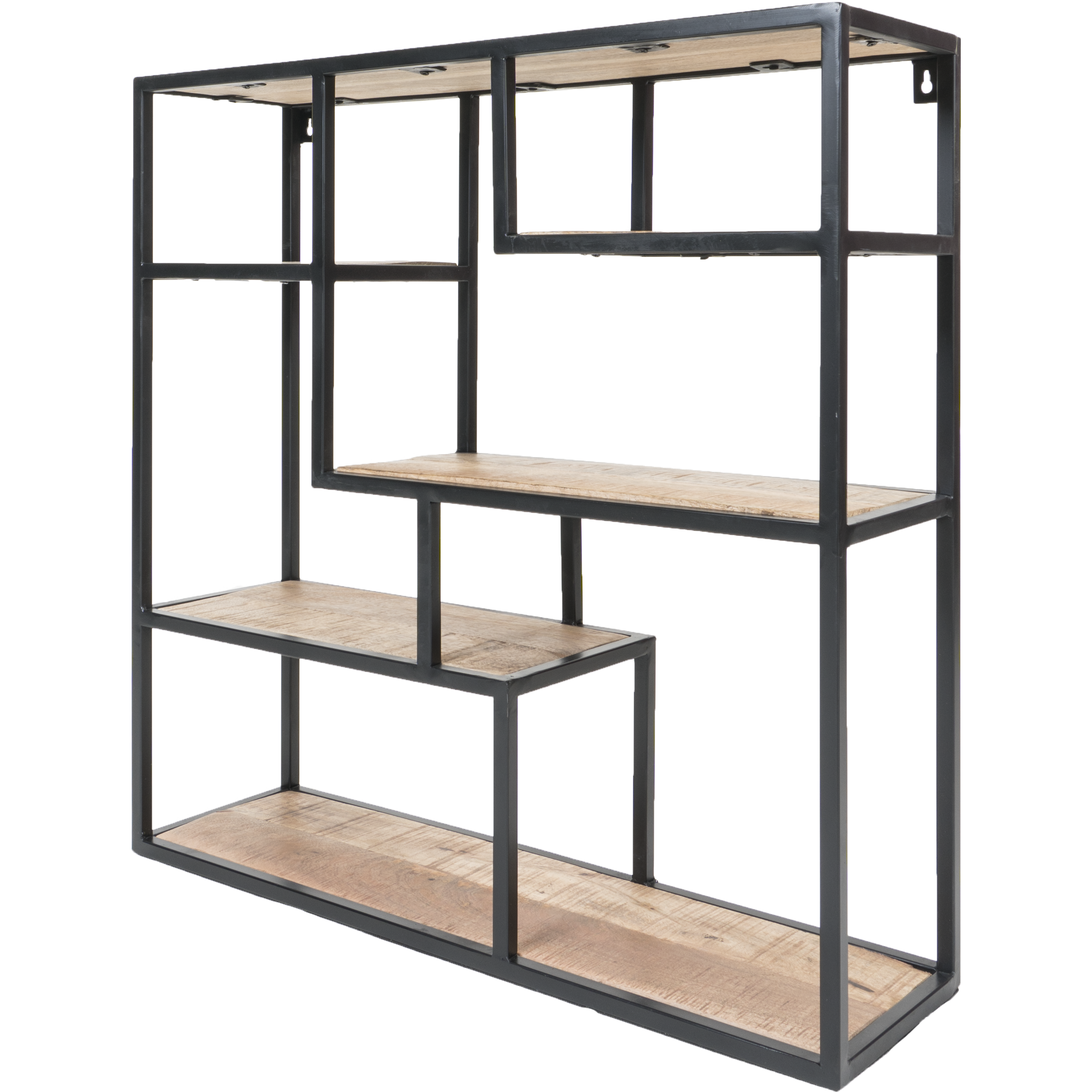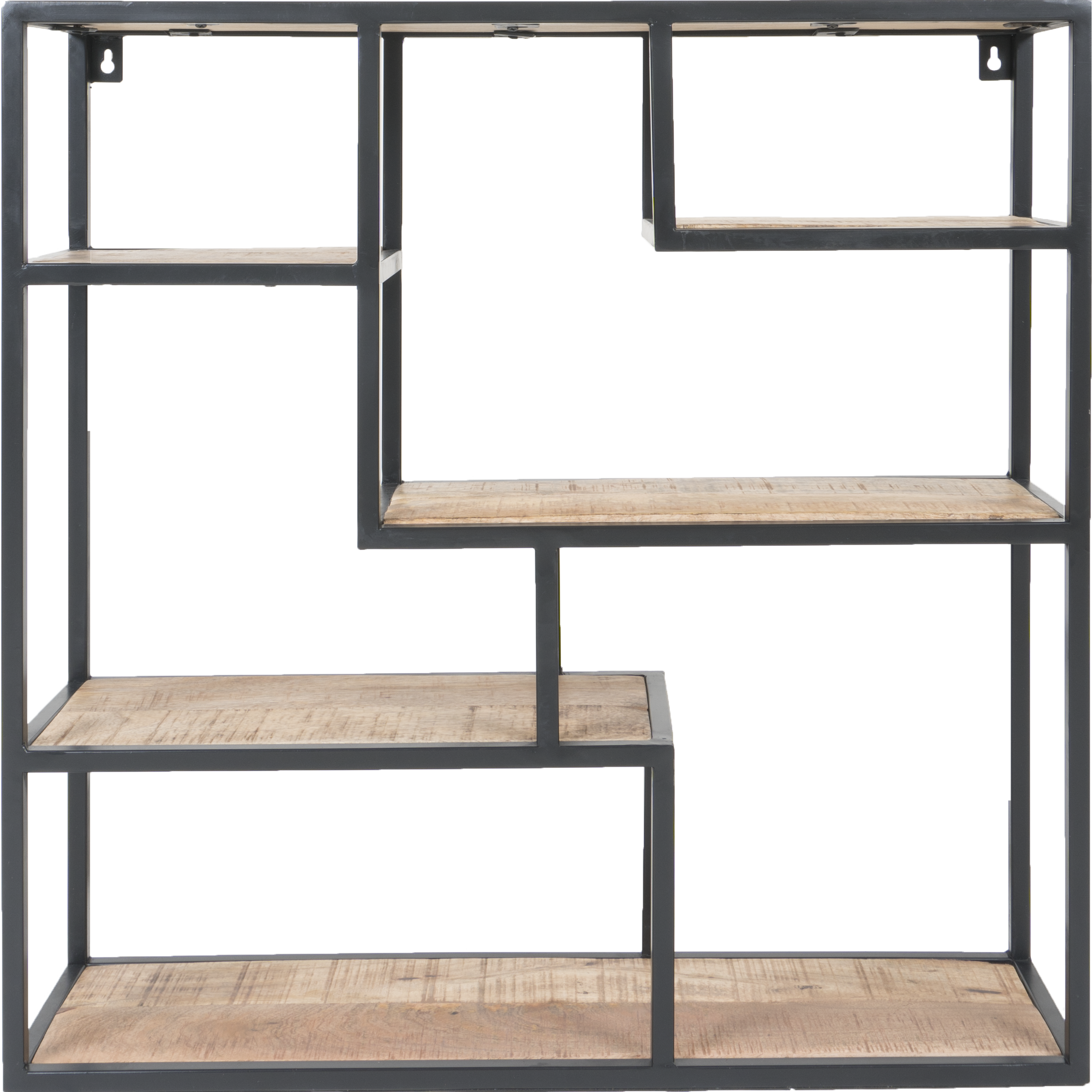 Vrolijk de muur op met wandrek Huub. Door de verspringende vakken heeft het wandrek een speelse uitstraling.